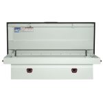 The new WEATHER GUARD 1KEY Ultralock is the next advancement in truck box security. The Ultralock combines one key simplicity with detent technology, providing quick visual assurance your gear is locked down and protected. The box features the new push button lock that can code multiple boxes on a truck or entire fleet to the same key. The Model 116-3-04 is an extra wide steel truck toolbox and has a storage capacity of 15.5 cubic feet. It is coated with a White ARMOR TUF® Powder Coat finish ensuring years of dependability.
