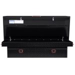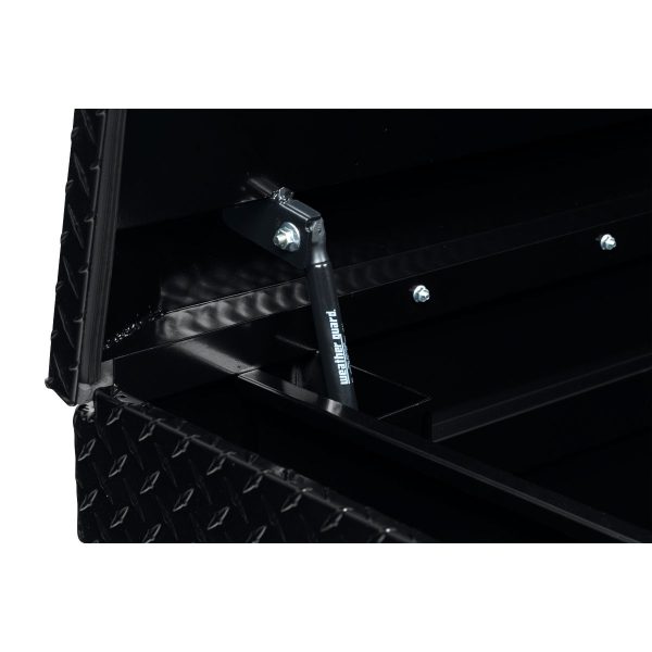 The new WEATHER GUARD 1KEY Ultralock is the next advancement in truck box security. The Ultralock combines one key simplicity with detent technology, providing quick visual assurance your gear is locked down and protected. The box features the new push button lock that can code multiple boxes on a truck or entire fleet to the same key. The Model 117-5-04 is an extra wide aluminum truck toolbox and has a storage capacity of 15.5 cubic feet. It is coated with a Gloss Black ARMOR TUF® Powder Coat finish ensuring years of dependability.