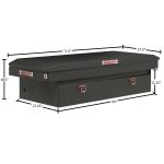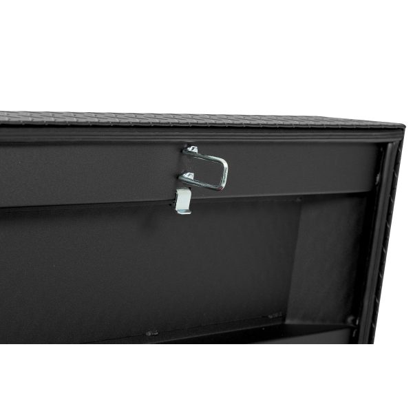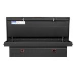The new WEATHER GUARD 1KEY Ultralock is the next advancement in truck box security. The Ultralock combines one key simplicity with detent technology, providing quick visual assurance your gear is locked down and protected. The box features the new push button lock that can code multiple boxes on a truck or entire fleet to the same key. The Model 117-52-04 is an extra wide aluminum truck toolbox and has a storage capacity of 15.5 cubic feet. It is coated with a Textured Matte Black ARMOR TUF® Powder Coat finish ensuring years of dependability.