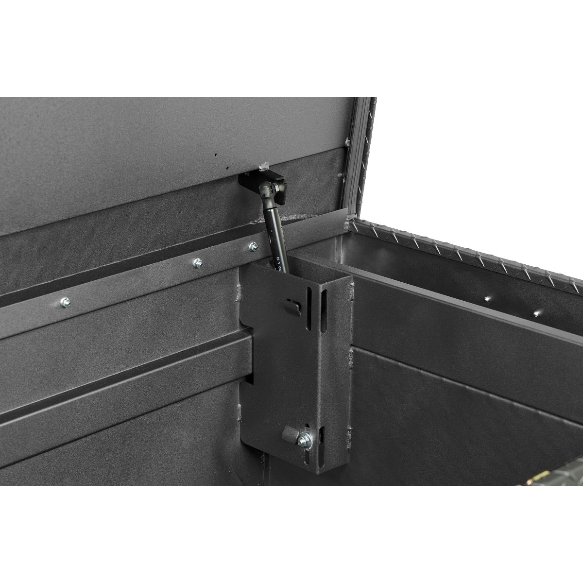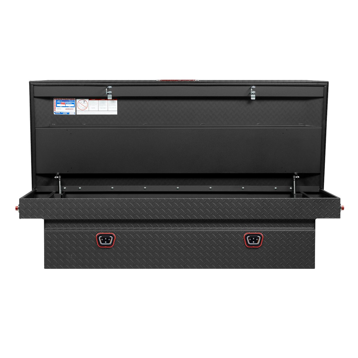 The new WEATHER GUARD 1KEY Ultralock is the next advancement in truck box security. The Ultralock combines one key simplicity with detent technology, providing quick visual assurance your gear is locked down and protected. The box features the new push button lock that can code multiple boxes on a truck or entire fleet to the same key. The Model 117-52-04 is an extra wide aluminum truck toolbox and has a storage capacity of 15.5 cubic feet. It is coated with a Textured Matte Black ARMOR TUF® Powder Coat finish ensuring years of dependability.