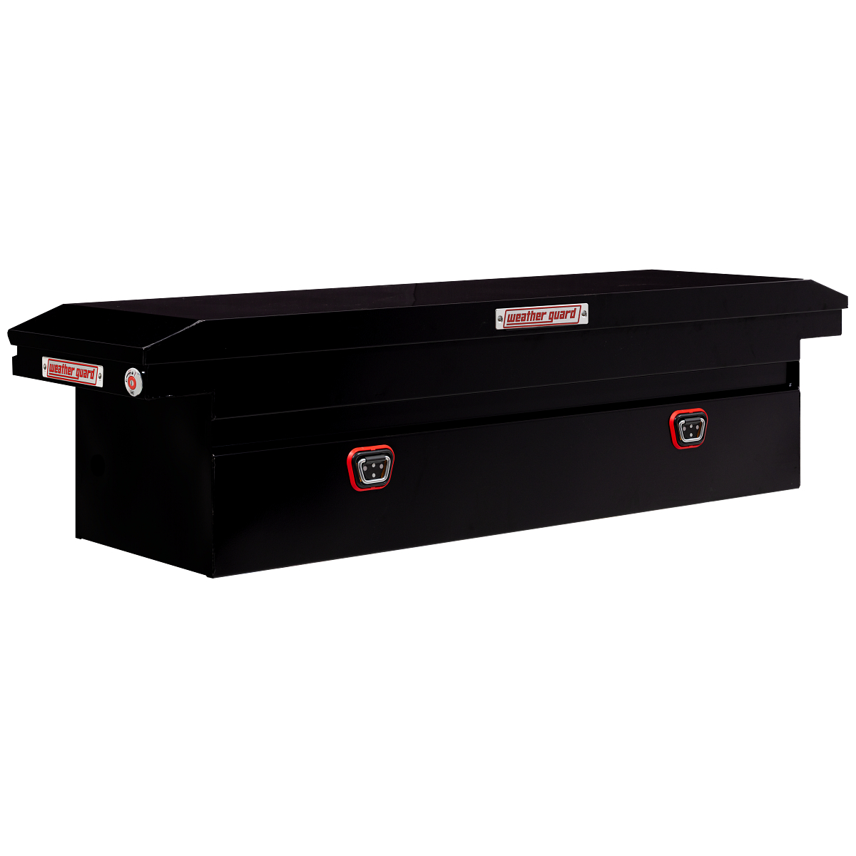 The new WEATHER GUARD 1KEY Ultralock is the next advancement in truck box security. The Ultralock combines one key simplicity with detent technology, providing quick visual assurance your gear is locked down and protected. The box features the new push button lock that can code multiple boxes on a truck or entire fleet to the same key. The Model 120-5-04 is a low profile steel truck toolbox and has a storage capacity of 11.0 cubic feet. It is coated with a Gloss Black ARMOR TUF® Powder Coat finish ensuring years of dependability.
