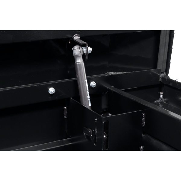 The new WEATHER GUARD 1KEY Ultralock is the next advancement in truck box security. The Ultralock combines one key simplicity with detent technology, providing quick visual assurance your gear is locked down and protected. The box features the new push button lock that can code multiple boxes on a truck or entire fleet to the same key. The Model 121-5-04 is a low profile aluminum truck toolbox and has a storage capacity of 11.0 cubic feet. It is coated with a Gloss Black ARMOR TUF® Powder Coat finish ensuring years of dependability.