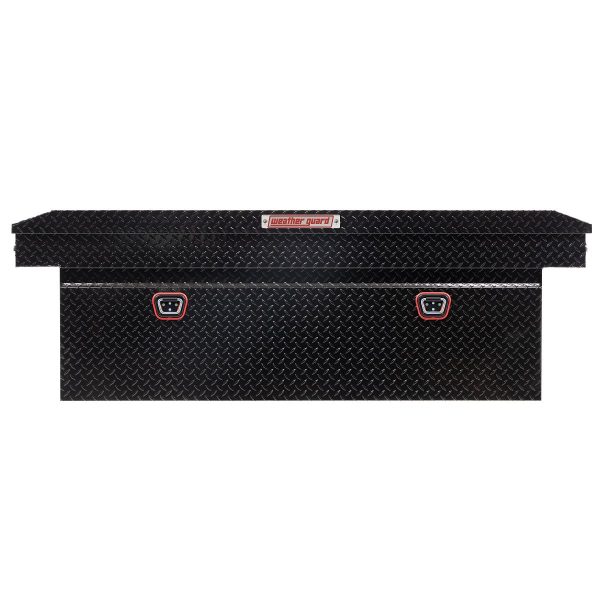 The new WEATHER GUARD 1KEY Ultralock is the next advancement in truck box security. The Ultralock combines one key simplicity with detent technology, providing quick visual assurance your gear is locked down and protected. The box features the new push button lock that can code multiple boxes on a truck or entire fleet to the same key. The Model 123-5-04 is a deep aluminum truck toolbox and has a storage capacity of 15.0 cubic feet. It is coated with a Gloss Black ARMOR TUF® Powder Coat finish ensuring years of dependability.