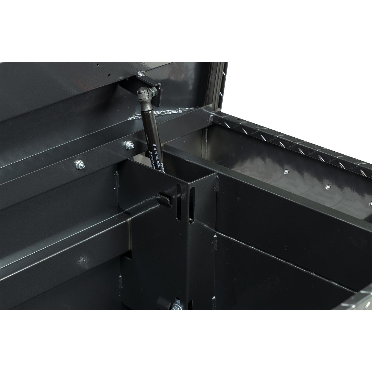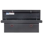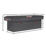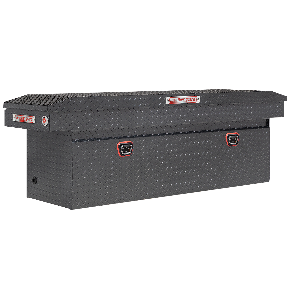 The new WEATHER GUARD 1KEY Ultralock is the next advancement in truck box security. The Ultralock combines one key simplicity with detent technology, providing quick visual assurance your gear is locked down and protected. The box features the new push button lock that can code multiple boxes on a truck or entire fleet to the same key. The Model 123-5-04 is a deep aluminum truck toolbox and has a storage capacity of 15.0 cubic feet. It is coated with a Gloss Black ARMOR TUF® Powder Coat finish ensuring years of dependability.