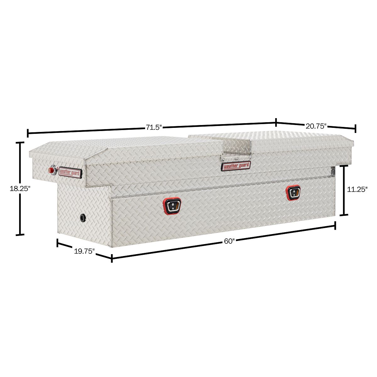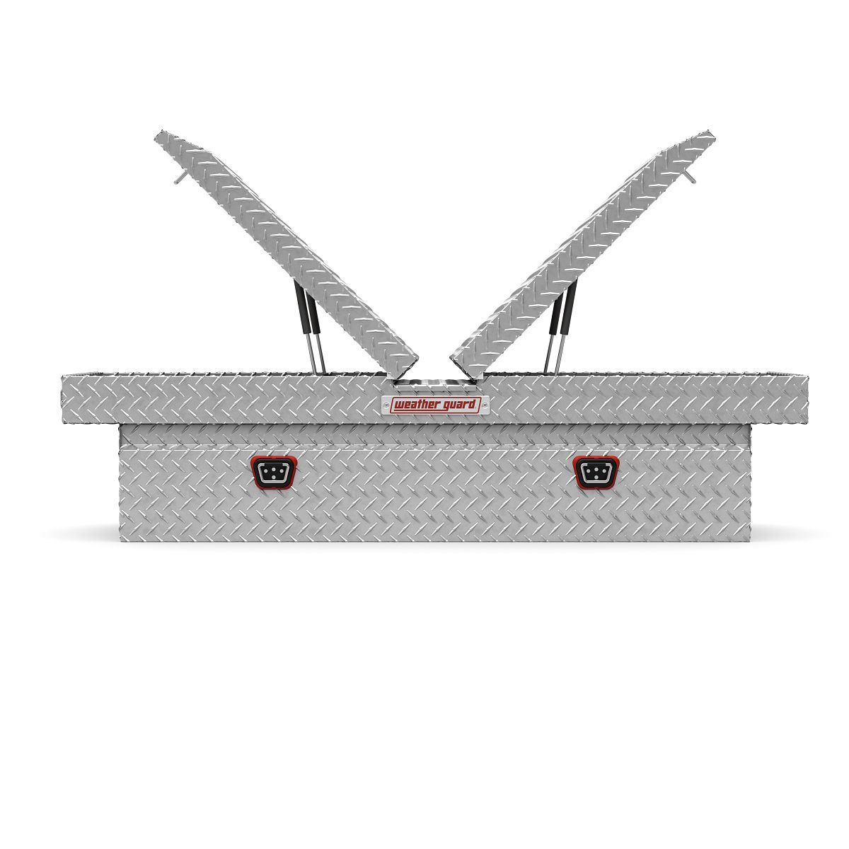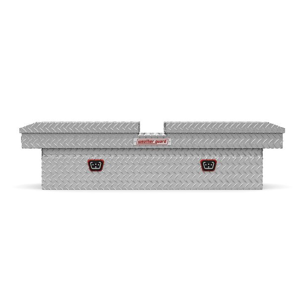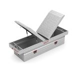 Gull Wing Tool Boxes allow access from either side of the truck with two independently locking lids. The Model 124-0-04 is an aluminum diamond plate gull wing truck tool box for full size trucks and has a storage capacity of 11.3 cu ft. The Clear ARMOR TUF® Powder Coat finish ensures years of dependability. This rugged, versatile crossover truck tool box has a full weather seal to keep out the elements.