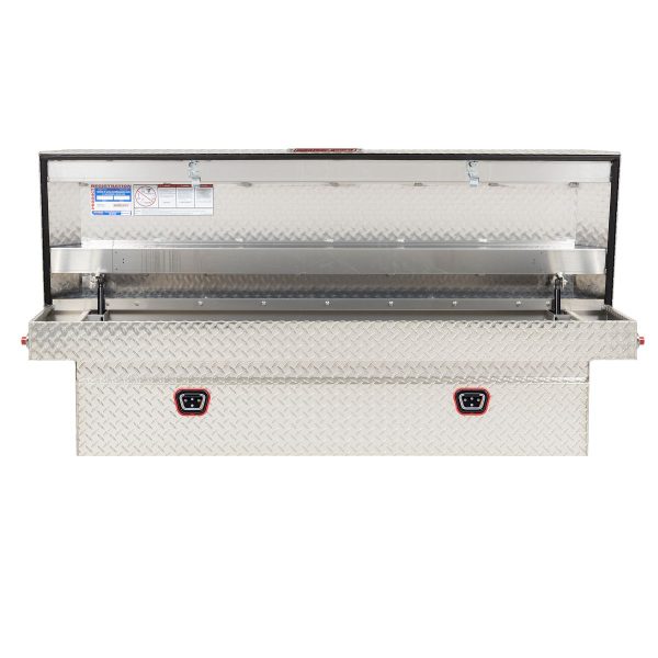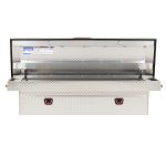 The new WEATHER GUARD 1KEY Ultralock is the next advancement in truck box security. The Ultralock combines one key simplicity with detent technology, providing quick visual assurance your gear is locked down and protected. The box features the new push button lock that can code multiple boxes on a truck or entire fleet to the same key. The Model 127-0-04 is a aluminum truck toolbox and has a storage capacity of 11.0 cubic feet. It is coated with a Clear ARMOR TUF® Powder Coat finish ensuring years of dependability.