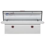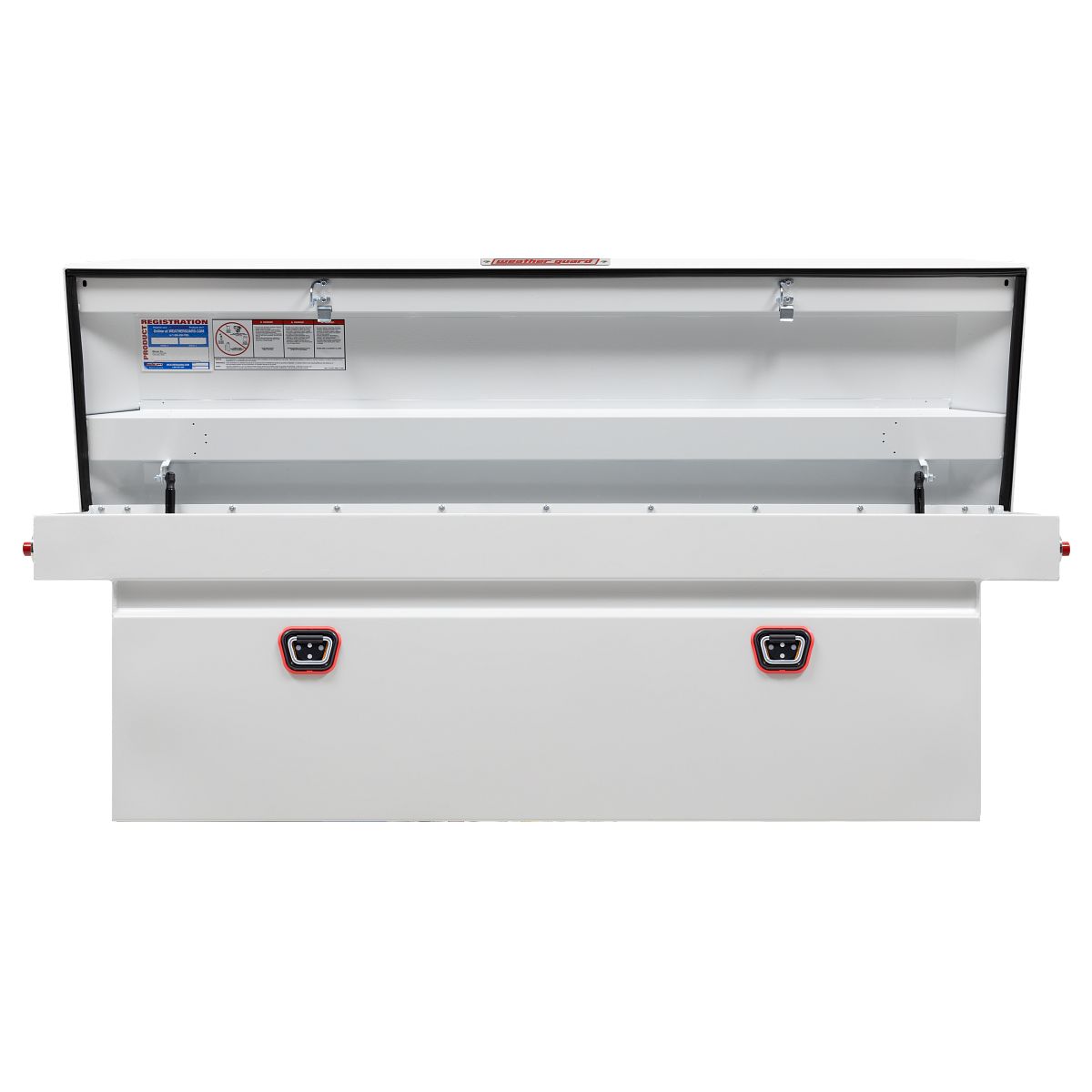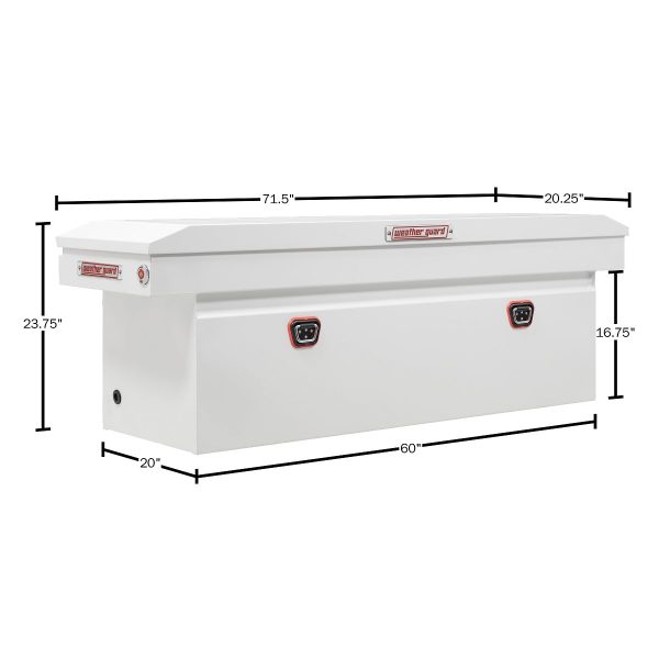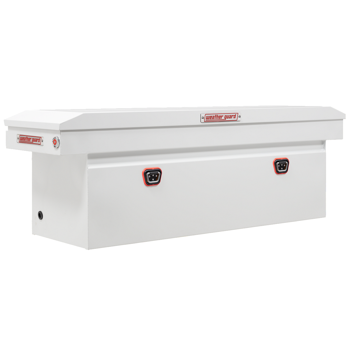 The new WEATHER GUARD 1KEY Ultralock is the next advancement in truck box security. The Ultralock combines one key simplicity with detent technology, providing quick visual assurance your gear is locked down and protected. The box features the new push button lock that can code multiple boxes on a truck or entire fleet to the same key. The Model 128-3-04 is a deep steel truck toolbox and has a storage capacity of 15.0 cubic feet. It is coated with a White ARMOR TUF® Powder Coat finish ensuring years of dependability.