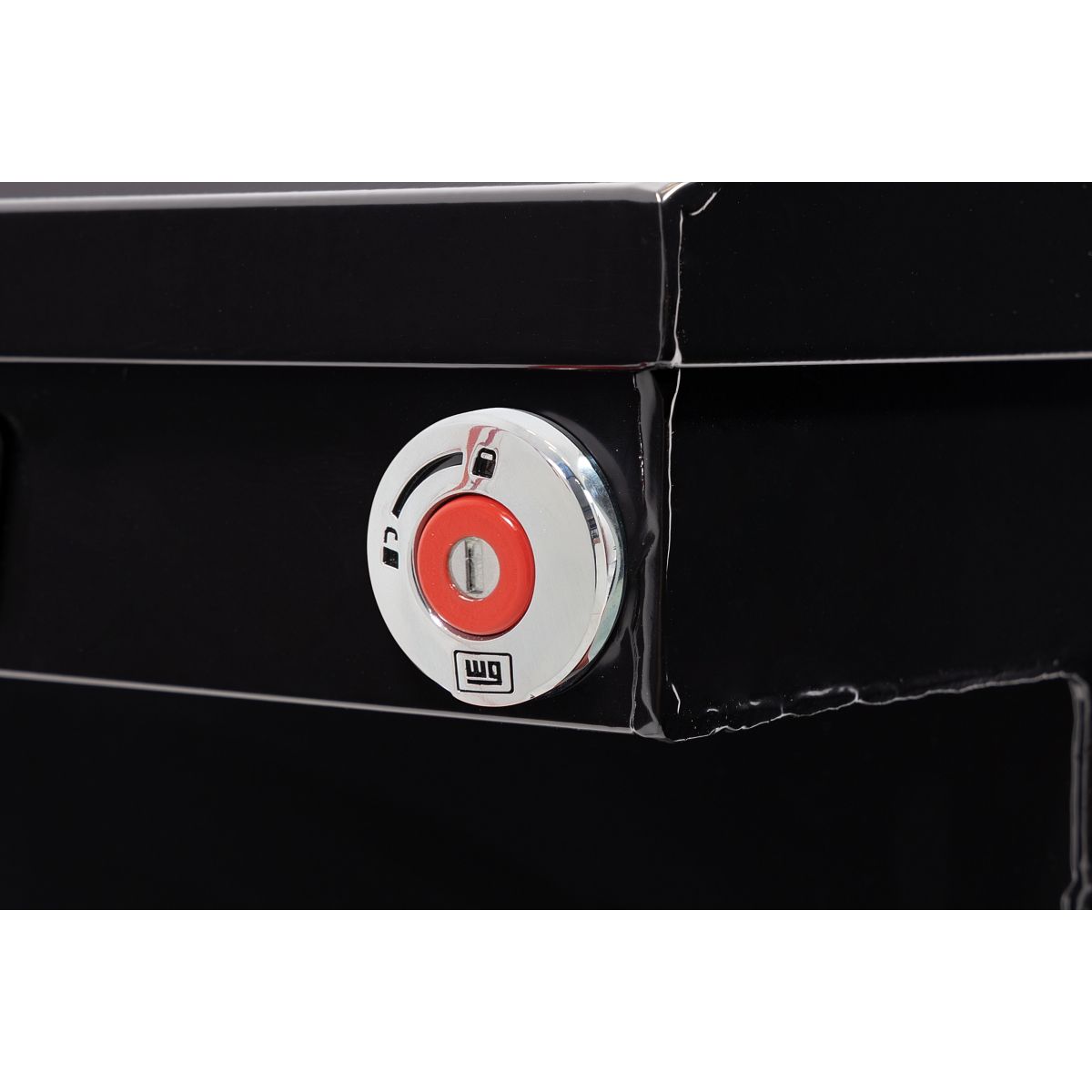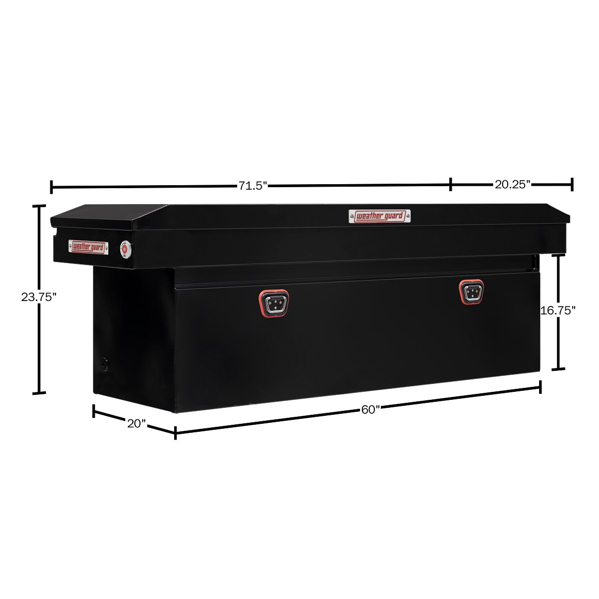 The new WEATHER GUARD 1KEY Ultralock is the next advancement in truck box security. The Ultralock combines one key simplicity with detent technology, providing quick visual assurance your gear is locked down and protected. The box features the new push button lock that can code multiple boxes on a truck or entire fleet to the same key. The Model 128-5-04 is a deep steel truck toolbox and has a storage capacity of 15.0 cubic feet. It is coated with a Gloss Black ARMOR TUF® Powder Coat finish ensuring years of dependability.