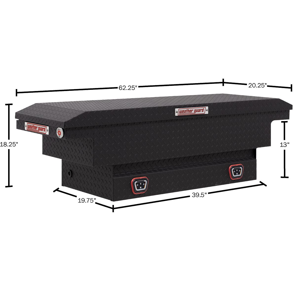 The new WEATHER GUARD 1KEY Ultralock is the next advancement in truck box security. The Ultralock combines one key simplicity with detent technology, providing quick visual assurance your gear is locked down and protected. The box features the new push button lock that can code multiple boxes on a truck or entire fleet to the same key. The Model 131-52-04 is a compact low profile aluminum truck toolbox and has a storage capacity of 8.0 cubic feet. It is coated with a Textured Matte Black ARMOR TUF® Powder Coat finish ensuring years of dependability.