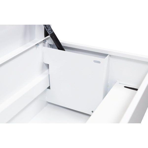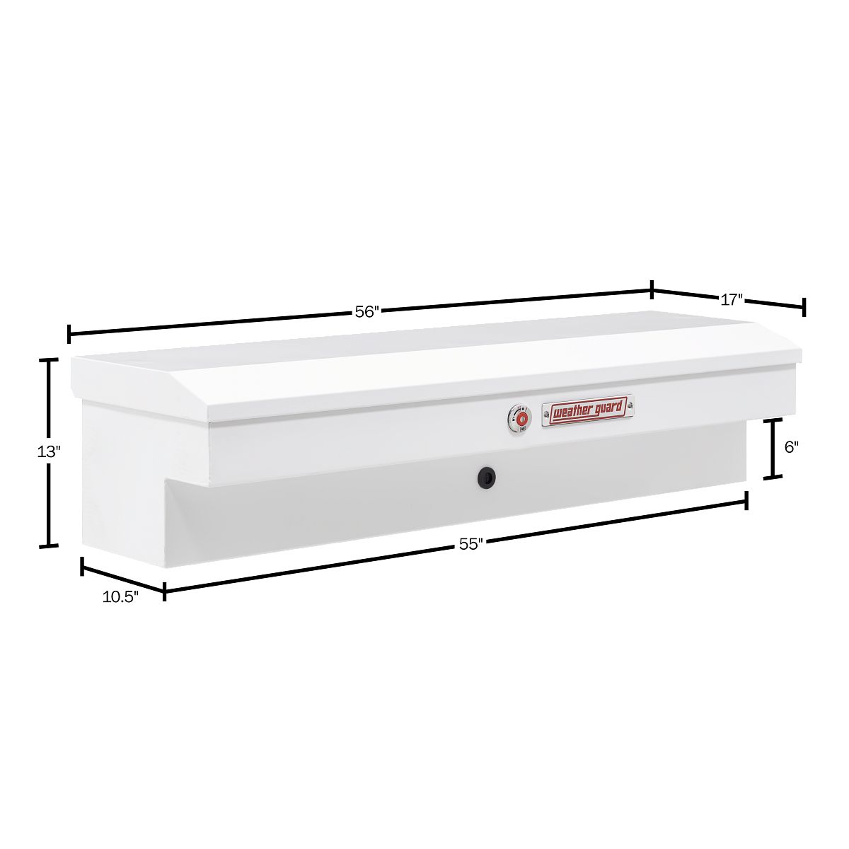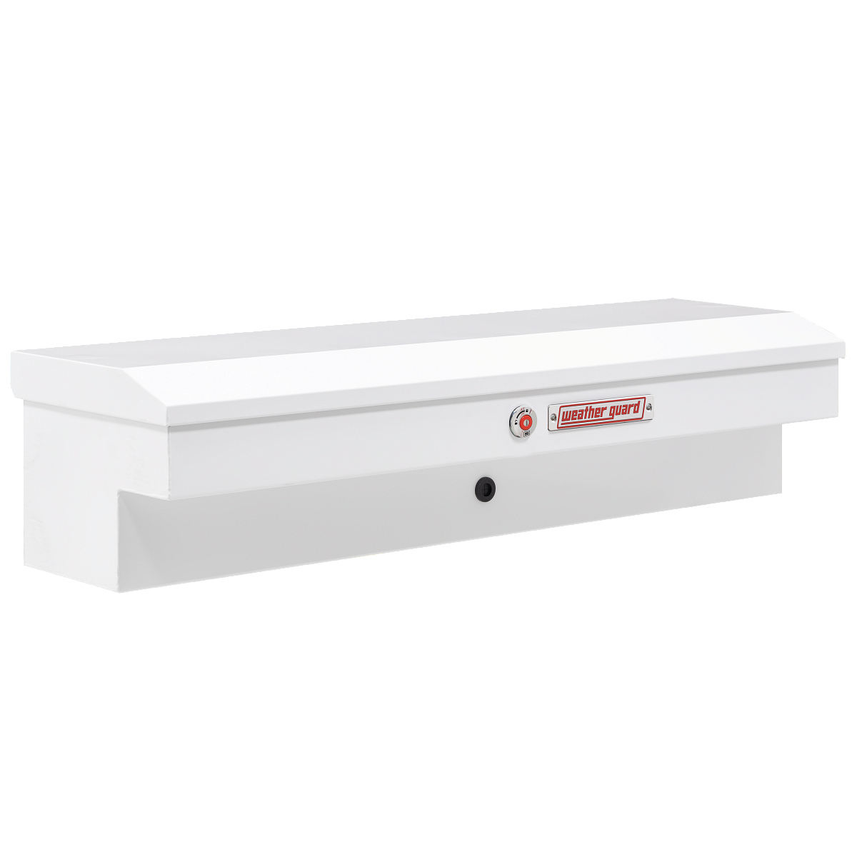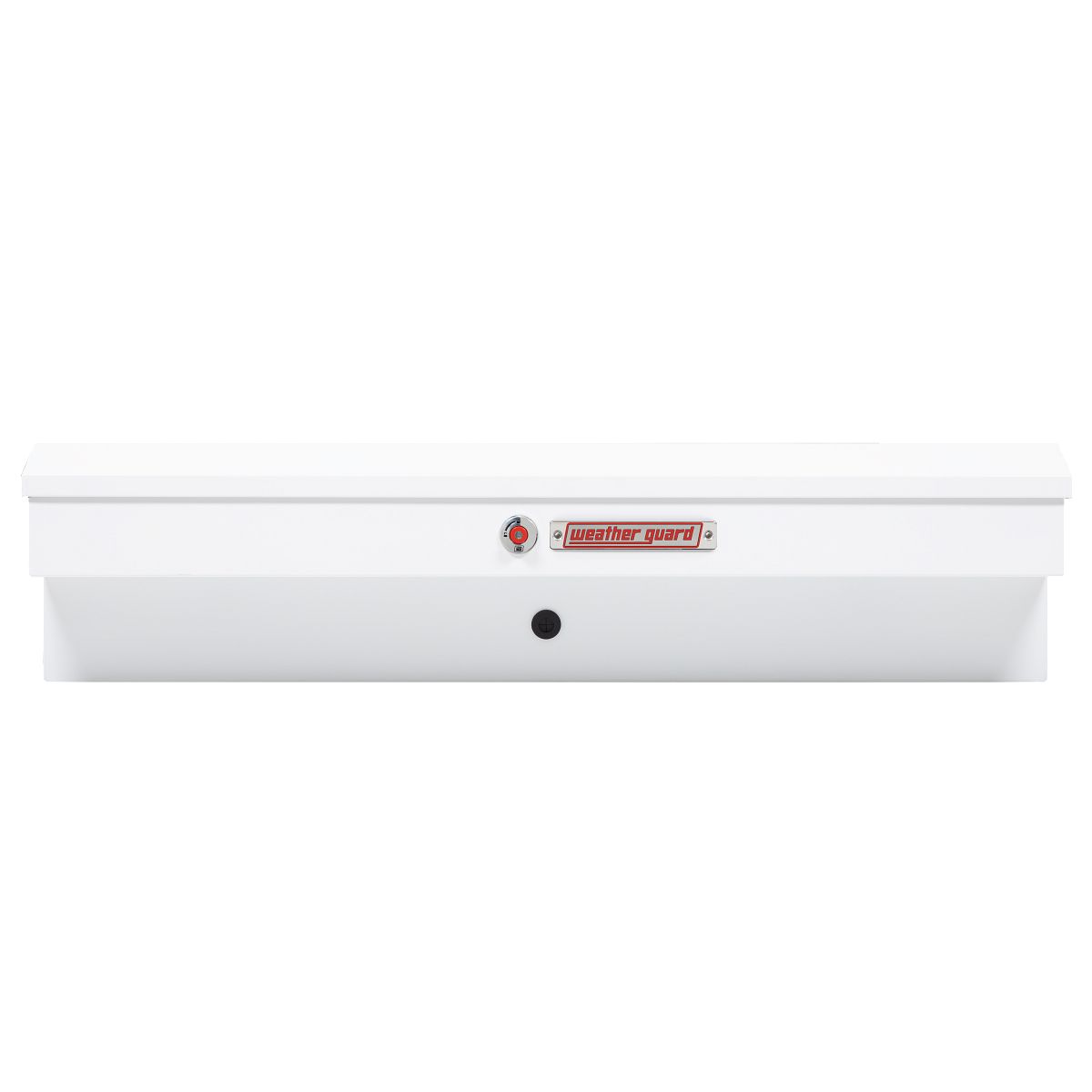 The new WEATHER GUARD 1KEY Ultralock is the next advancement in truck box security. The Ultralock combines one key simplicity with detent technology, providing quick visual assurance your gear is locked down and protected. The box features the new push button lock that can code multiple boxes on a truck or entire fleet to the same key. The Model 175-3-04 is a lo-side steel truck toolbox and has a storage capacity of 4.0 cubic feet. It is coated with a White ARMOR TUF® Powder Coat finish ensuring years of dependability.