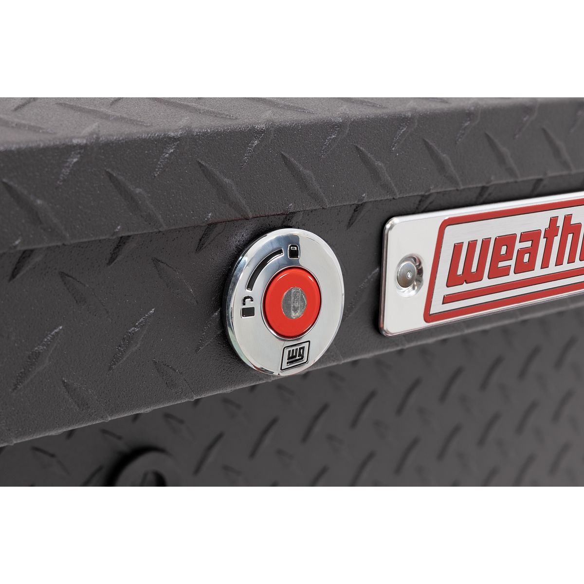 The new WEATHER GUARD 1KEY Ultralock is the next advancement in truck box security. The Ultralock combines one key simplicity with detent technology, providing quick visual assurance your gear is locked down and protected. The box features the new push button lock that can code multiple boxes on a truck or entire fleet to the same key. The Model 180-52-04 is a lo-side aluminum truck toolbox and has a storage capacity of 3.0 cubic feet. It is coated with a Textured Matte Black ARMOR TUF® Powder Coat finish ensuring years of dependability.