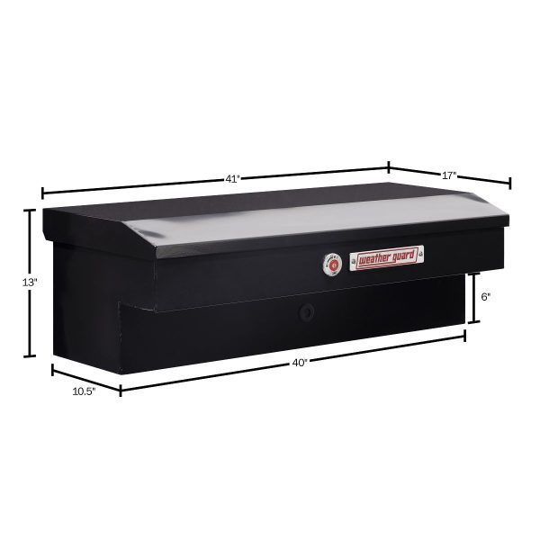 The new WEATHER GUARD 1KEY Ultralock is the next advancement in truck box security. The Ultralock combines one key simplicity with detent technology, providing quick visual assurance your gear is locked down and protected. The box features the new push button lock that can code multiple boxes on a truck or entire fleet to the same key. The Model 185-5-04 is a lo-side steel truck toolbox and has a storage capacity of 3.0 cubic feet. It is coated with a Gloss Black ARMOR TUF® Powder Coat finish ensuring years of dependability.