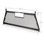 The PROTECT-A-RAIL® Headache Rack is designed to protect the cab of full-size pickups from shifting loads in the cargo area and provide heavy-duty cab protection. The 1906-5-02 Screen Headache Rack features a steel mesh screen design in Black ARMOR TUF® Powder Coat finish ensures years of dependability.
