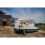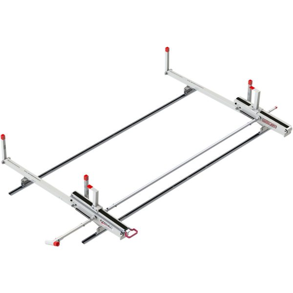 Introducing the new and improved aluminum van roof rack. All-purpose van racks create a space to carry ladders and other long work van equipment. Designed to mount to aluminum mounting channels or roof gutters, the 70in Model 209-3-03 All-Purpose Van Rack is a two cross-member van rack for full-size vans. Stainless steel hardware and a Brite White ARMOR TUF® Powder Coat finish help protect against time and weather.
