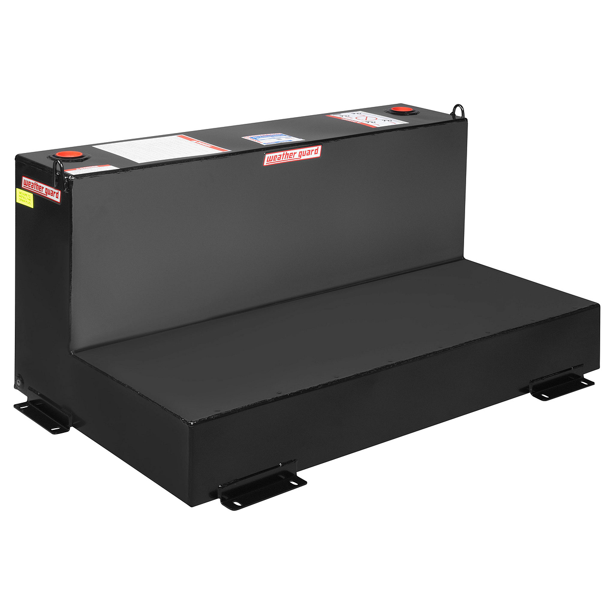 Moving large amounts of diesel fuel or hydraulic fluid has never been easier thanks to the WEATHER GUARD Model 354-5-02 Steel Transfer Tank, L-Shape, 90-gallon With an L-shaped fuel tank, this unit is perfect for any full-size truck that has a Gull Wing Box or Saddle Box. This diesel fuel Steel Transfer Tank also improves safety with an interior baffle design to reduce fuel movement.