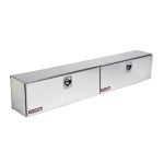 Hi-Side Truck Tool Boxes mount on the bed rails of your truck and offer quick access to valuable tools, equipment, and parts while keeping the truck bed open for supplies. The Model 396-0-02 is an aluminum diamond plate high side truck tool box with a storage capacity of 11.8 cubic feet. The Clear ARMOR TUF® Powder Coat finish ensures years of dependability.