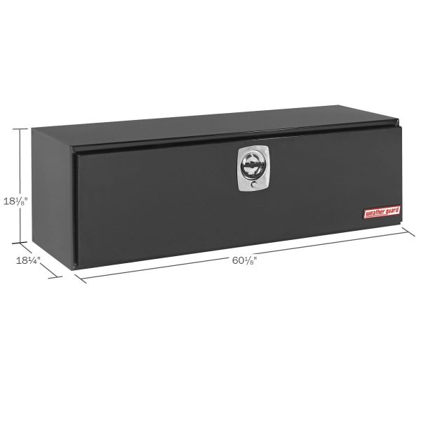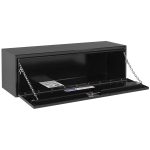 Under Bed Tool Boxes are designed for heavy-duty trucks and semi trucks to keep larger, heavier items and tools secure, yet easily accessible. The Model 560-5-02 is a steel standard size underbed truck tool box with a storage capacity of 11.2 cubic feet. The Gloss Black ARMOR TUF® Powder Coat finish ensures years of dependability. The rotary style, two position latch helps protect against the-foot and weather.