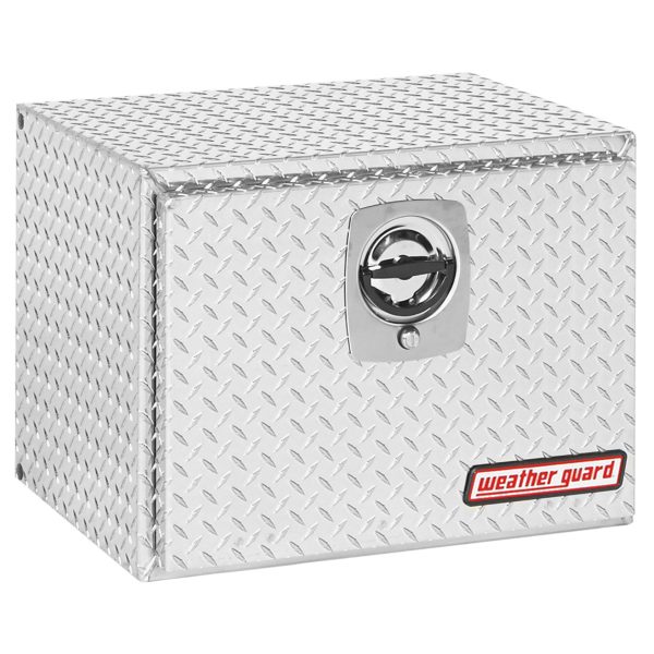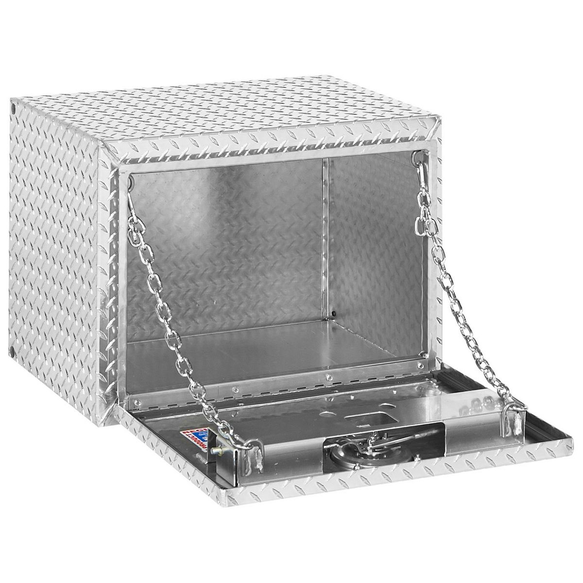 Under Bed Tool Boxes are designed for heavy-duty trucks and semi trucks to keep larger, heavier items and tools secure, yet easily accessible. The Model 627-0-02 is an aluminum diamond plate compact size underbed truck tool box with a storage capacity of 4.3 cubic feet. The Clear ARMOR TUF® Powder Coat finish ensures years of dependability. The rotary style, two position latch helps protect against the-foot and weather.