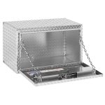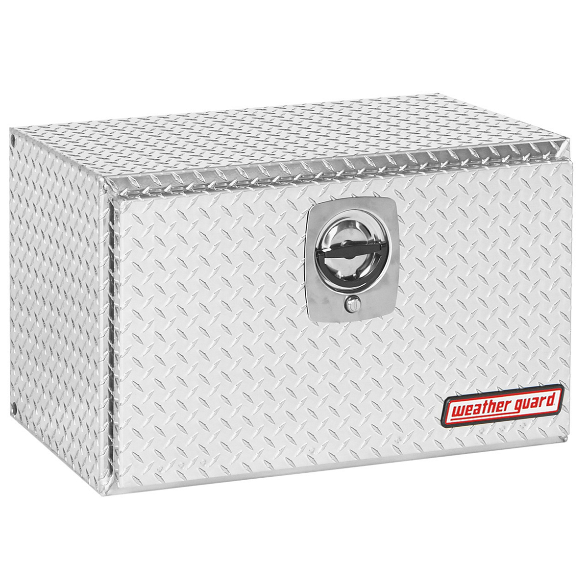 Under Bed Tool Boxes are designed for heavy-duty trucks and semi trucks to keep larger, heavier items and tools secure, yet easily accessible. The Model 631-0-02 is an aluminum diamond plate compact size underbed truck tool box with a storage capacity of 5.4 cubic feet. The Clear ARMOR TUF® Powder Coat finish ensures years of dependability. The rotary style, two position latch helps protect against the-foot and weather.