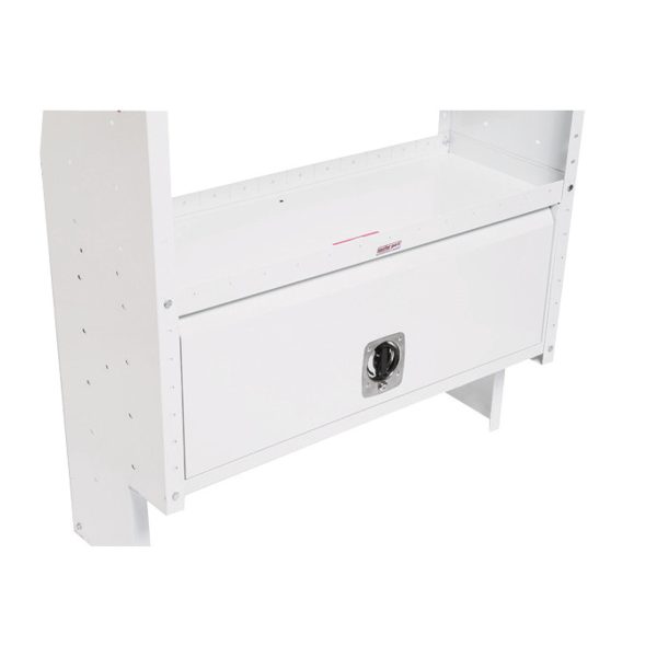 Add extra security and theft-resistance for valuable tools and equipment with the Model 9040-3-01 Secure Storage Module with lockable door. Measuring 42 inches high, 17 inches wide and 16 inches deep, the welded steel construction and heavy-duty locking mechanism on the cargo van storage cabinet ensures peace of mind on the job or in the parking lot.