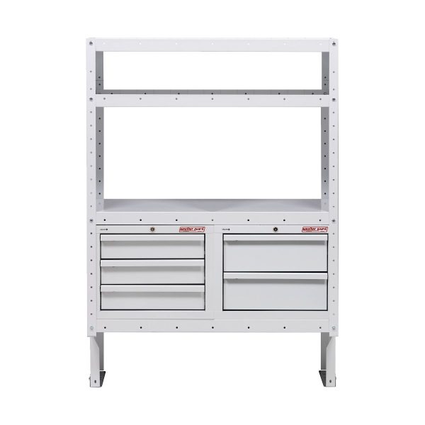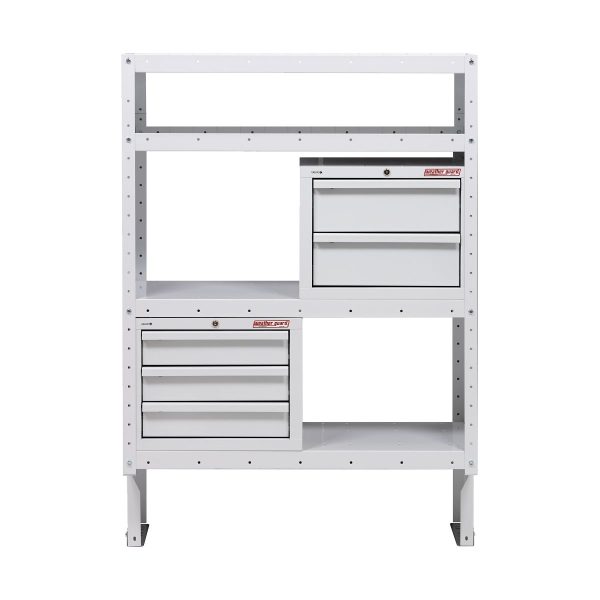 Add extra security and theft-resistance for valuable tools and equipment with the Model 9045-3-03 Secure Storage Module Kit containing a two drawer and a three drawer lockable cabinet. Each drawer on the cargo van storage unit securely latches to stay closed even when the cabinet is unlocked. Measuring 42 inches wide, 17 inches high and 16 inches deep, the welded steel construction and heavy-duty locking mechanism ensures peace of mind on the job or in the parking lot. NOTE: Model 9045-3-03 is a storage kit that includes (1) 902-3-01 and (1) 903-3-01 and is designed to mount to standard 16-inch deep shelving.