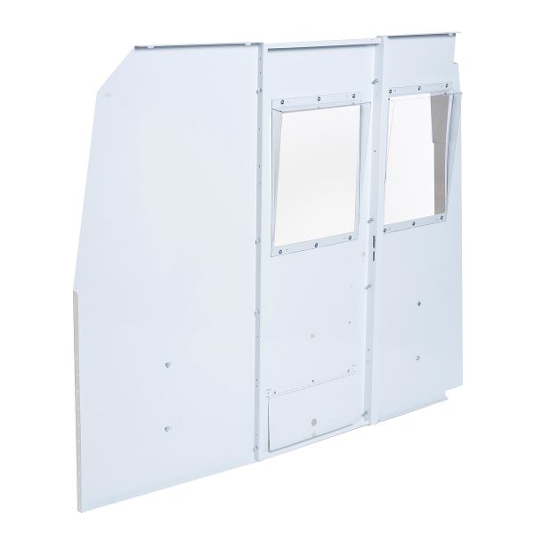 Van bulkheads separate the driver compartment from the cargo area for maximum protection against shifting or moving cargo. Designed for both mid-roof and high-roof RAM ProMaster vans, the Model 96141-3-01 window bulkhead and cargo van partition fits close to the van interior and the polycarbonate windows provide a quieter, more comfortable ride with improved visibility to the cargo area. The center section of the cargo van divider can be converted to a swinging door. A large area with pre-punched mounting holes makes it easy to mount work van accessories. Compliant to FMVSS safety standards for cargo vans.