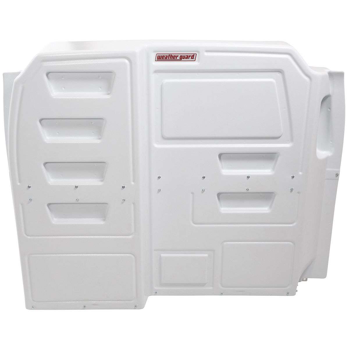 The Model 96300-3-01 CabMax™ composite bulkhead is a single piece, composite bulkhead designed for Ford Transit full size vans. It is designed to fit low-roof vans. Single-piece bulkheads provide separation from the driver compartment and storage area, protecting the driver against shifting loads. An innovative profile design provides increased space in the cab allowing for improved driver comfort and storage space. The tight fit provides improved climate control and noise reduction. A floating floor angle adjusts accordingly for all van floor types. With no drilling into the floor, potential for mishaps is virtually eliminated. Van window accessories are available for sight line to back and side of van. Organization accessory panels can be placed in multiple locations for customization of cargo van storage solutions.