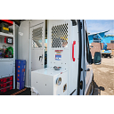 Convert the center panel of a full-size van bulkhead into a swinging door with the Model 96901-3-01 Swing Door Conversion Kit. This kit is compatible with Models 96101-3-01, 96102-3-01,96121-3-01, 96141-3-01, 96142-3-01, 96201-3-01, 96301-3-01, 96301-3-01D, 96302-3-01, 96302-3-01D, 96311-3-01, 96311-3-01D, 96312-3-01, 96312-3-01D, 96321-3-01, 96321-3-01D, 96322-3-01, and 96322-3-01D van bulkheads. This kit includes hinges and a door handle with a lock.
